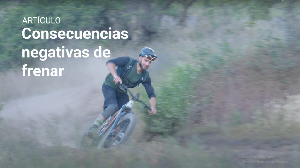 Todo lo que es disminución de velocidad, es decir, el frenado activo, que sea antes de la curva, idealmente en un terreno recto y y con pocas irregularidades. Durante la curva, podemos accionar levemente los frenos, es decir, un frenado pasivo, que nos permita mantener la velocidad. Con esto, queremos evitar disminuir la velocidad en las curvas. Al frenar levemente o nada en las curvas, no sufriremos las consecuencias negativas de frenar y nuestras curvas serán más eficientes, limpias y seguras.